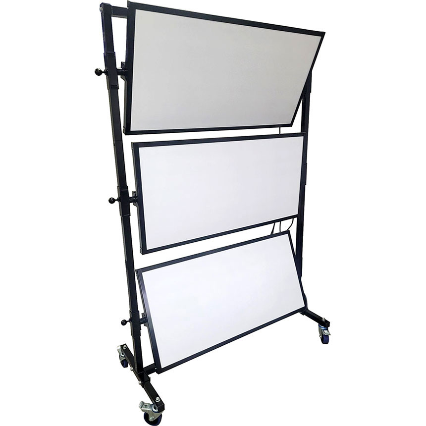 • Adjustable Design – Panels move vertically with a single-handle pin release and pivot on spring-loaded brackets for perfect angles, even under lifts.