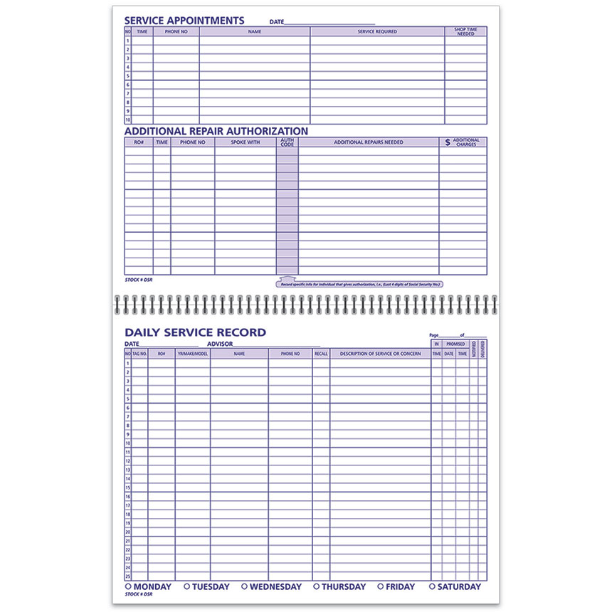 This compact spiral bound book is an excellent way to track repair appointments and authorizations for additional repairs.