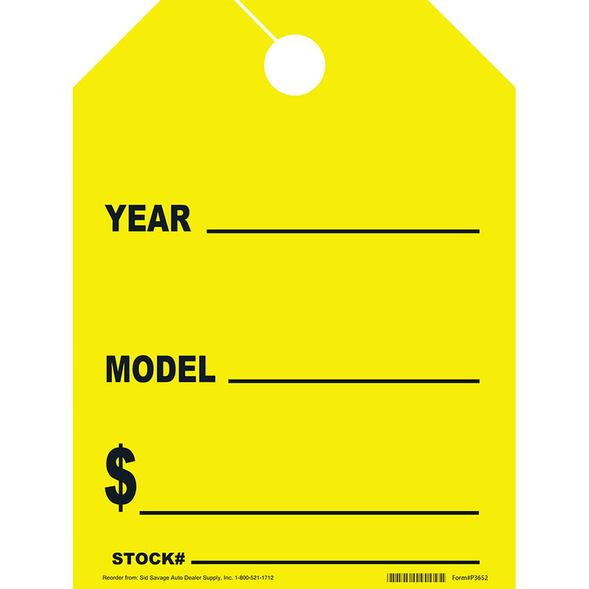 Get your information across whether your dealership is open or not with our Yellow "Down" Fluorescent Rear View Mirror Tags. Rear view mirror tags are made of a fluorescent yellow stock paper. Mirror tags easily attach to any rear view mirror and can be removed quickly for test drives. Hanging mirror tags are sold 50 per pack. Each Yellow "Down" Fluorescent Rear View Mirror Tag is 8.5"W x 11.5"H.