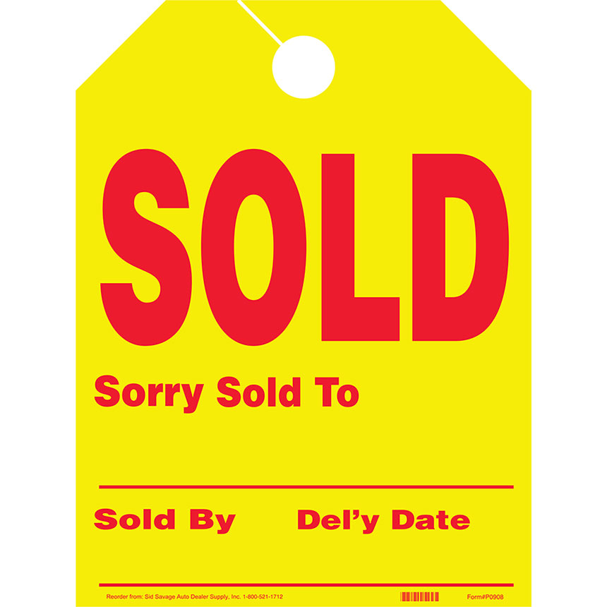 Get your message across whether your dealership is open or not with our Yellow Sold Fluorescent Rear View Mirror Tags. Tags are made of fluorescent stock paper and attach easily to any rear view mirror, with quick removal for test drives. Sold Mirror tags measure Mirror Tags are 8.5"W x 11.5"H and come 50 in a pack.